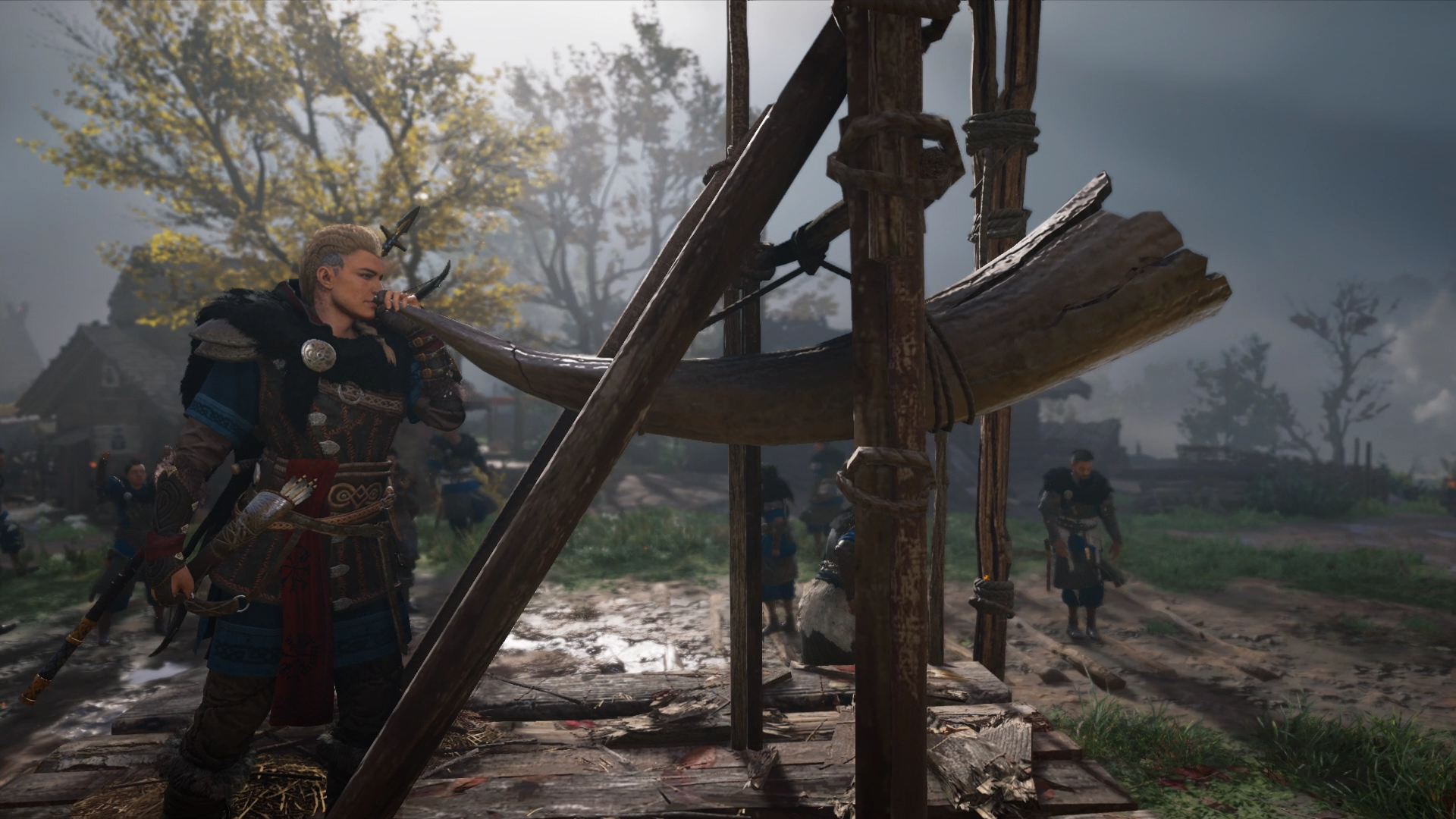 Eivor preparing to fight the Saxon mercenaries