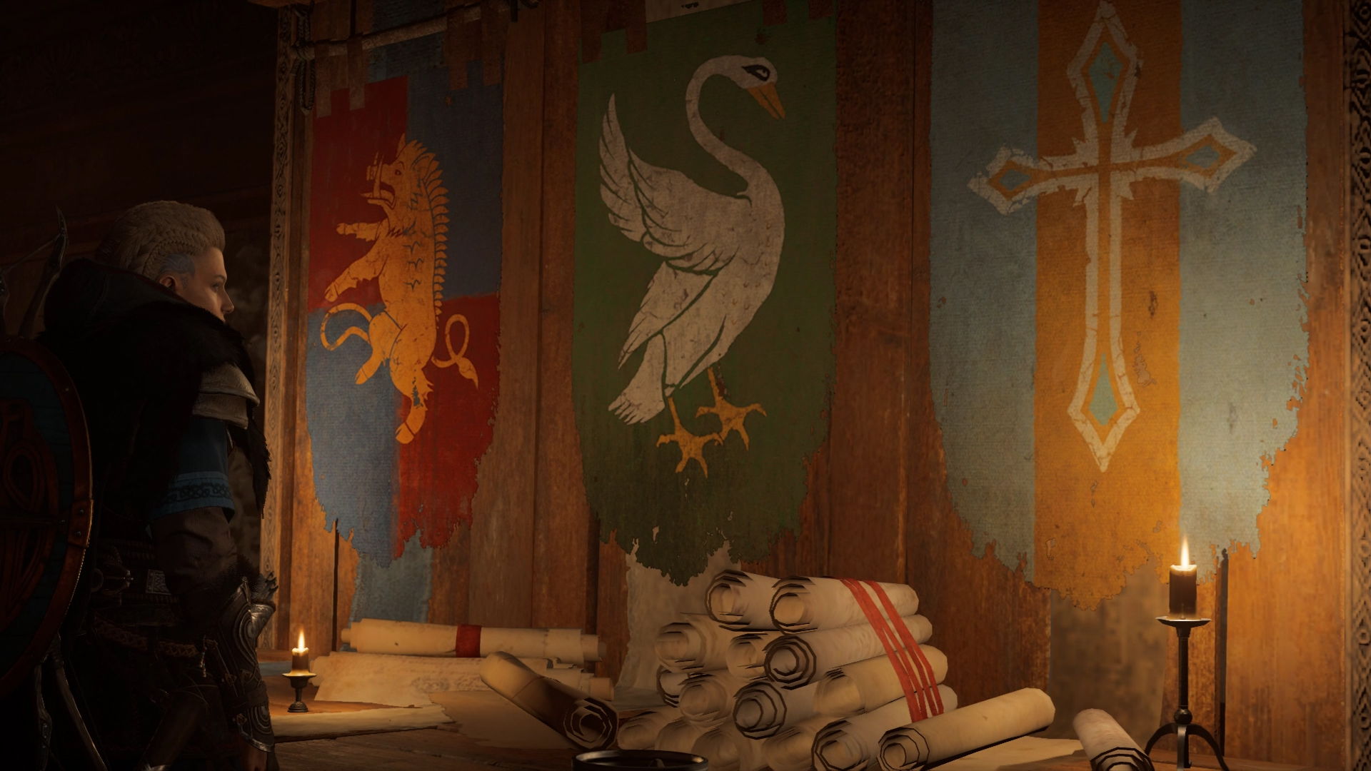 Eivor's family went on to settle in Heillboer, a small settlement in northern Rygjafylke, within the territory controlled by Styrbjorn Sigvaldisson's clan. Eivor's family came to bond with Styrbjorn's family, with Eivor befriending and growing up alongside Styrbjorn's own son Sigurd. On one occasion, Eivor accidentally spilled ink on her father's throne, much to his anger. She also had fond memories of sitting around the hearth of their longhouse listening to her mother's voice.[3]