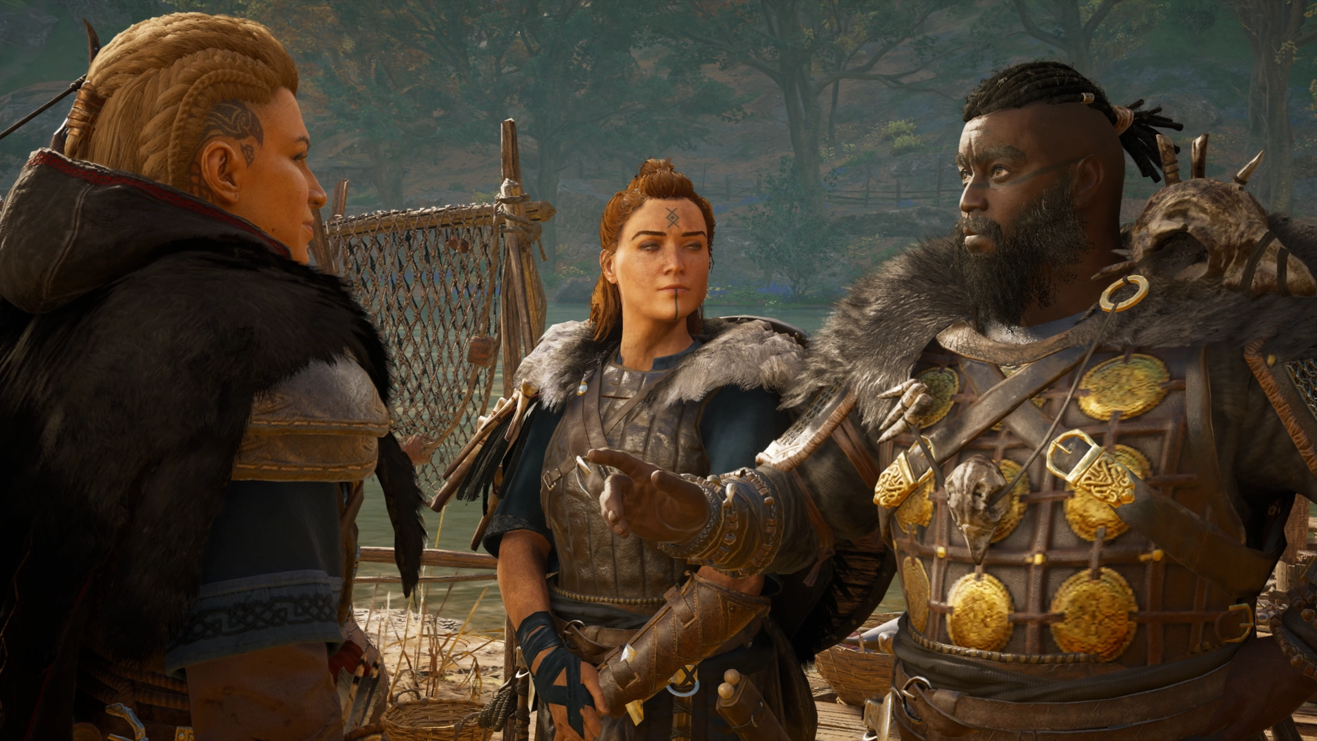 Eivor with Soma reunited with her friends