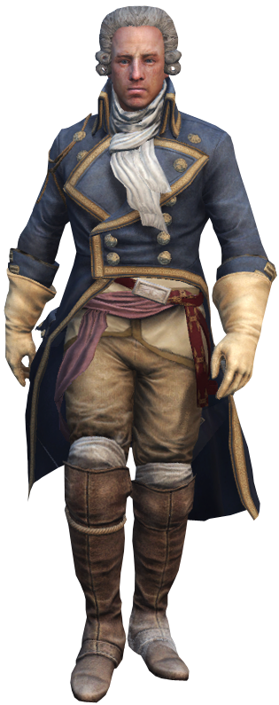 - ↑ 1.0 1.1 1.2 1.3 1.4 1.5 1.6 1.7 1.8 Assassin's Creed III – Database: Marquis de Lafayette