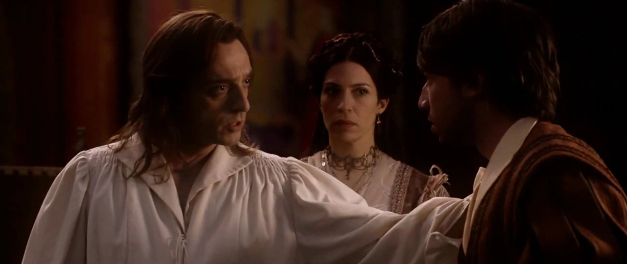 Giovanni returned home, where his wife tended to his wound. During this time, he confessed to her that he feared the assassination of the Duke of Milan had only been the beginning of a much wider conspiracy. Before he could go on however, the two were interrupted by their son Federico, who warned him that Father Maffei had arrived with armed guards. Asking his son to provide him cover, Giovanni slipped out of the palazzo through a secret passage within the fireplace.[9]