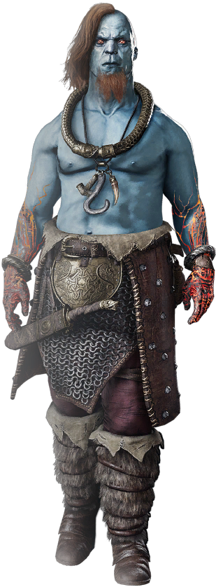 As seen in Eivor's visions, Glöð displayed superhuman abilities. In addition to his fire based abilities, Glöð possesses immense strength, endurance and might for a jötnar or a Muspel, with him being capable of initially overpowering Odin, ragdolling Einar, and smashing through the floor.[4] In his final fight with Odin, he showed the ability to transform himself into a giant burning lynx.[1] Glöð was also a capable tracker, being able to find Odin and Ivaldi's hiding location on his own very quickly. [citation needed]