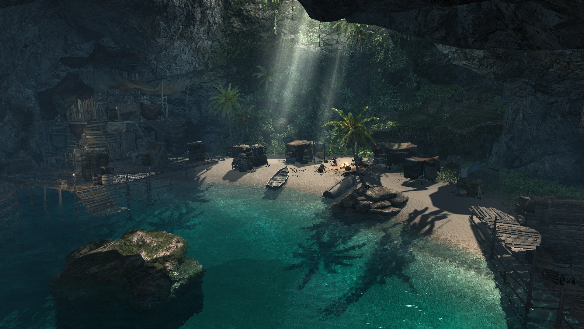 Jiguey, located on the northern coast of Cuba, was one of several smuggler dens in the Caribbean. It was found and robbed of its supplies by the pirate Edward Kenway during the early 18th century.