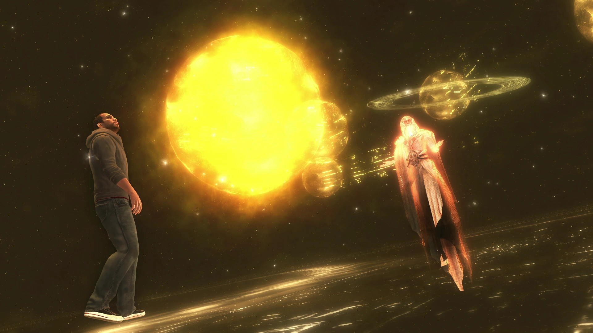 In 2012, Jupiter spoke with Desmond, whom he referred to as "the Cipher", in the nexus of time. There, he told him of the Isu's Temples and of the First Disaster. In order to prevent the Second Disaster, Jupiter urged Desmond to seek out the Grand Temple and told him the means of opening the way.[14]