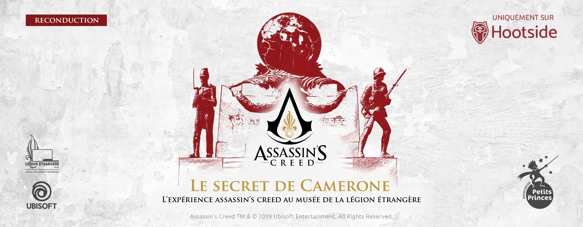 30 April 1863, 7AM, a fight breaks out between a unit of the Foreign Legion and liberal troops of the Mexican government during the French expedition to Mexico. These 24 hours of clashes made this battle famous, where Captain Danjou, who died in combat, left behind a powerful relic, leading to the historical reputation of the Battle of Camarón. The story goes that it is present here, at the Foreign Legion Museum in Aubagne. Equipped with the eagle vision function, you will have to collect clues in real time in the Foreign Legion Museum, essential to carry out your mission: reconstruct the memory of these ancestors using the Animus and find the location of the artifact, ensuring that it will be safe. Immerse yourself in an augmented reality adventure, following in the footsteps of Captain Jean Danjou and Corporal Louis Philippe Maine.[1]