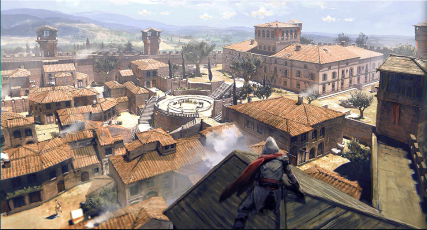 - The faction flags seen on the towers near the faction buildings in Assassin's Creed II were not present in Brotherhood.