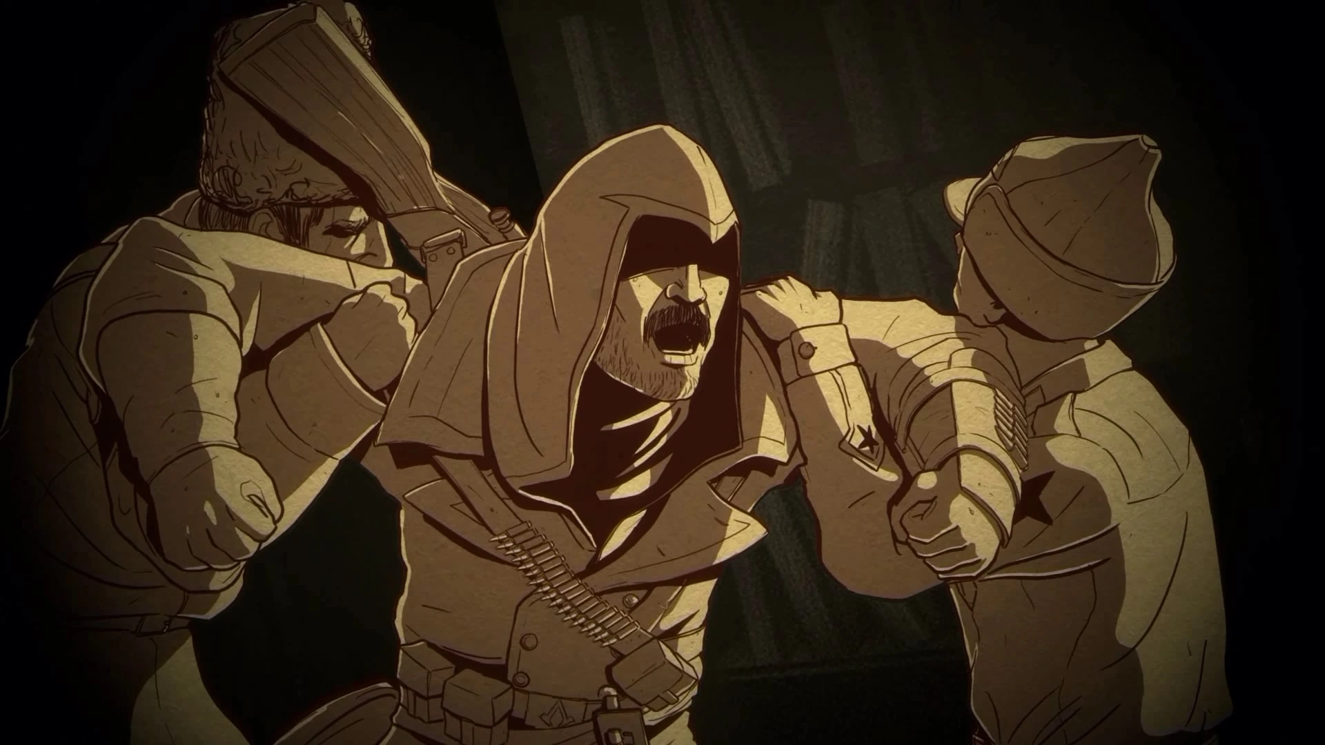 Evading the numerous soldiers in Kazan, Nikolai eventually found Trotsky in an isolated house. Unfortunately for the Assassin, Trotsky thought that Anastasia was too dangerous as a symbol to be left alive and wanted her dead to further the Revolution. Having deduced that Nikolai would come to him, Trotsky betrayed his friend to the Templars, who captured him.[9] The Assassin was subsequently taken away to be interrogated for Anastasia and the box's whereabouts, but refused to tell the Templars a thing.[10]