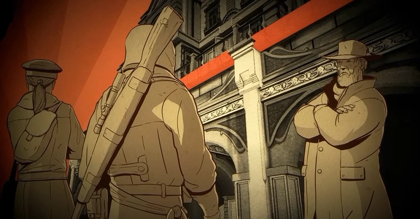 Eventually, Nikolai was rescued by Anastasia, who had made use of Shao Jun's skills to find and reach him.[10] As the two decided to escape Kazan, they split up, with Anastasia sticking to the streets and buildings while Nikolai took to the rooftops to cover her with his rifle. Once the pair reached a bridge where they were surrounded by Bolshevik soldiers, Anastasia pushed an explosive barrel towards the bridge, allowing Nikolai to shoot it and blow up the bridge, losing their pursuers.[11]