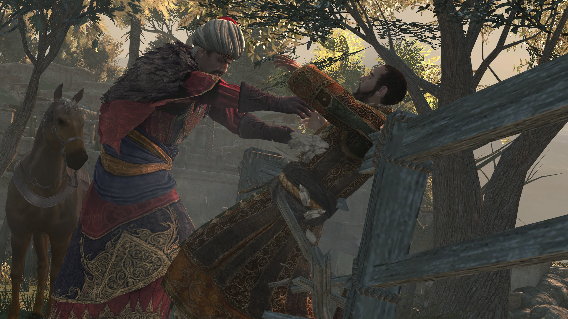 Selim, who was returning with his army to Constantinople, found his brother facing off Ezio. Revealing to Ahmet that his father had abdicated and had chosen him as his successor, he started strangling him knowing of his betrayal to the Ottoman Empire and his alliance with the Byzantine Templars. During the struggle, Selim pushed his brother off a nearby cliff, killing him in the process. Selim then turned to Ezio and told him that his son Suleiman spoke quite highly of him and that was because of this that he would spare Ezio's life, on the condition that he never set foot in Constantinople ever again.