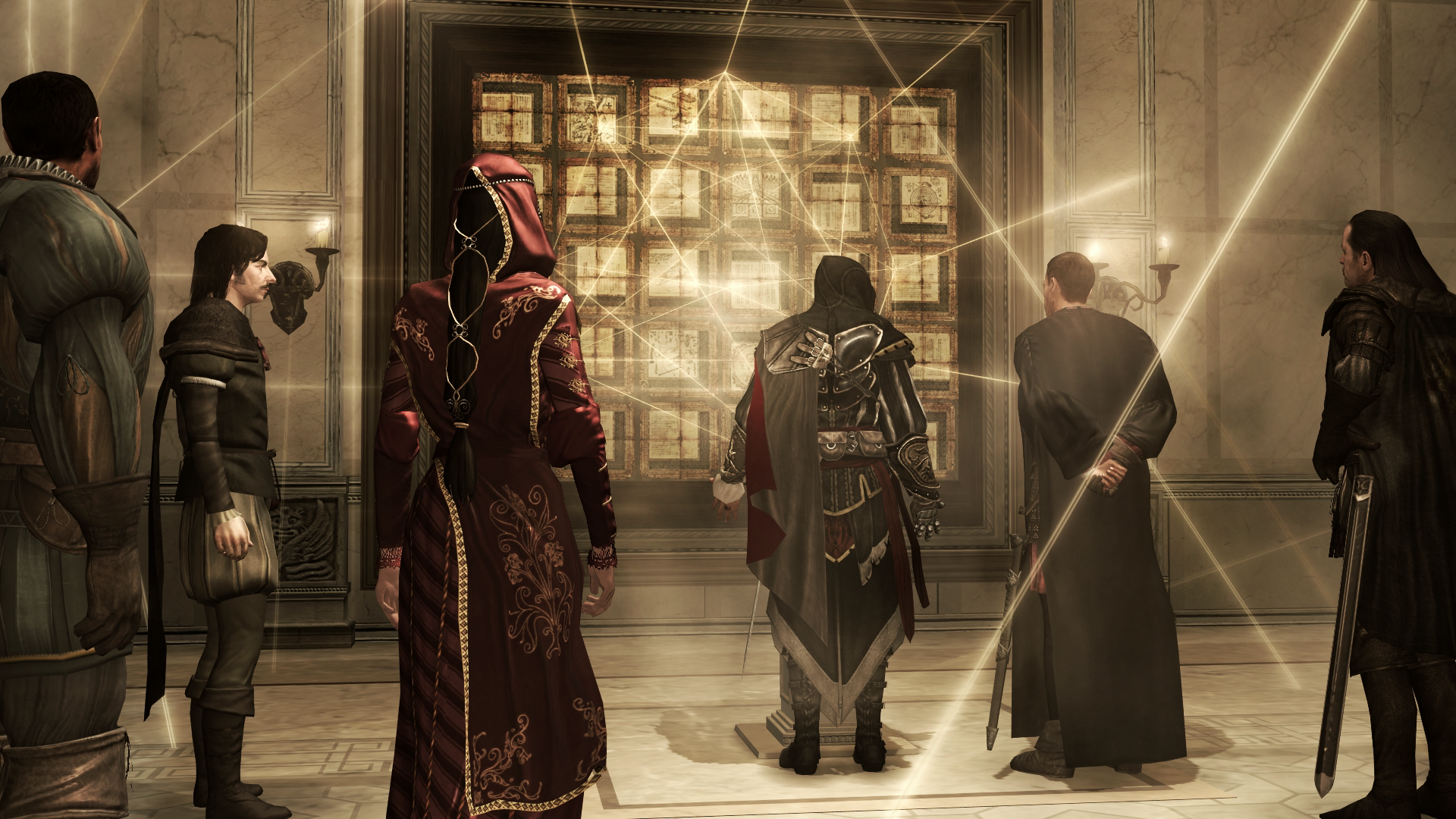 Arriving there, the Assassins stumbled upon Ezio fighting off Rodrigo and his guards. While Paola, Teodora Contanto and Niccolò Machiavelli remained on the sidelines, the other Assassins assisted Ezio in the fight. At the fight's conclusion, Rodrigo fled and Ezio took the Apple, followed by Niccolò revealing to him that all of the others were Assassins.[2]