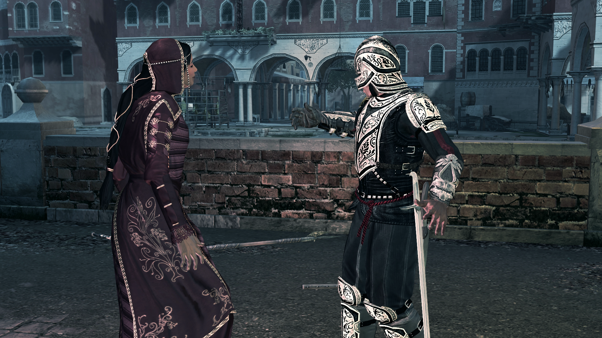 Many years later, she was present at the claiming of the Apple of Eden from Rodrigo Borgia in Venice, along with many other Assassins that had helped Ezio during his travels.