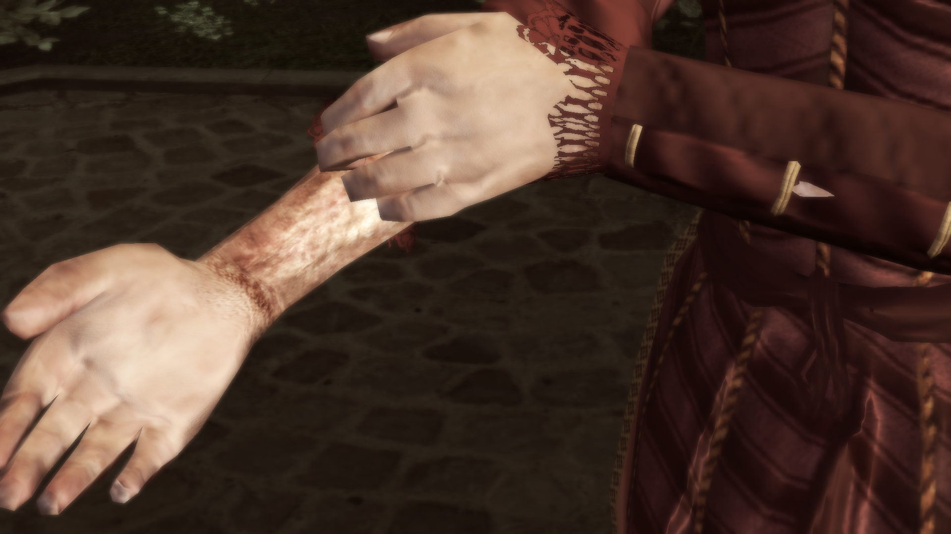 - In Assassin's Creed: Renaissance, Paola's arm was "marred by the ugly, long dark scars which criss-crossed it", whereas in-game the damage appeared to be more like burn marks.