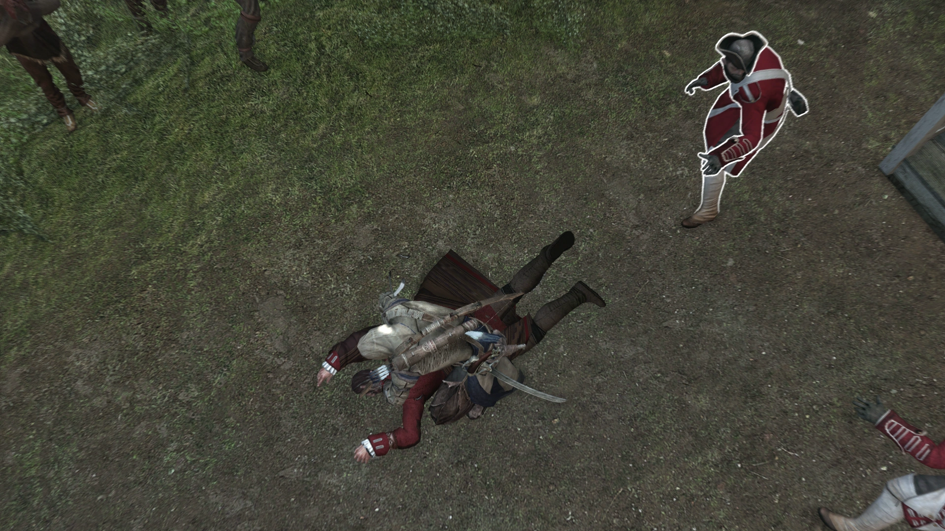 Shortly after their return from Boston, Connor and Achilles were alerted by a man banging on the window of the manor and calling for help. Connor immediately followed him to the nearby river and saw a second man clinging to an adrift log, which was rapidly heading towards a waterfall. Connor chased him along the riverbank, before jumping into the water to save him from falling to his death ahead.[15]