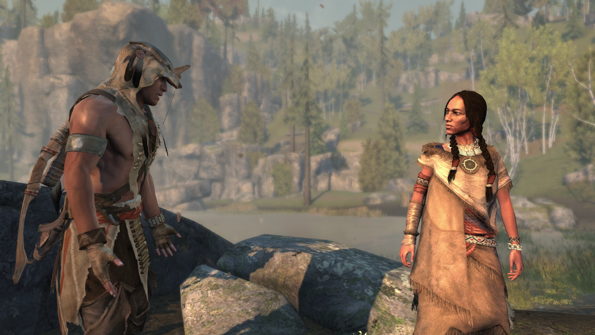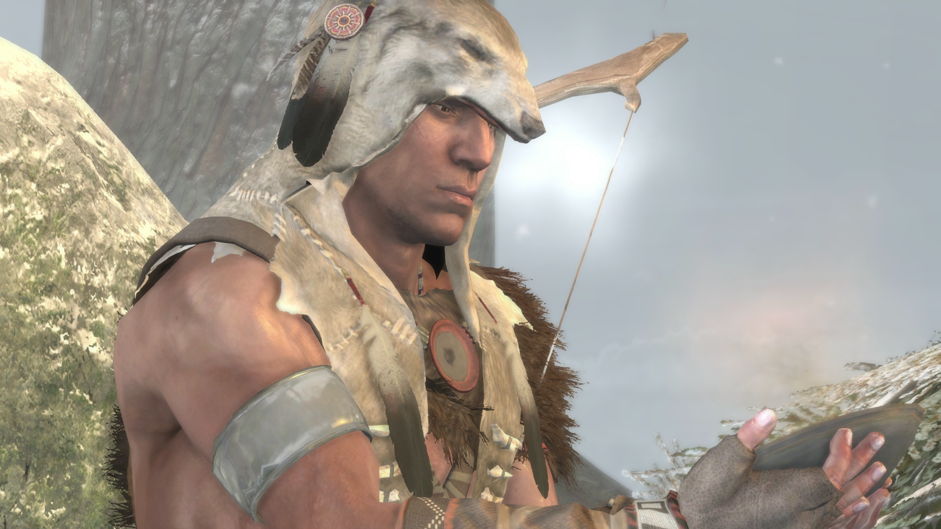 Ratonhnhaké:ton remained in his village, which was rebuilt following the attack that had claimed his mother, until the age of thirteen. He served his tribe as a hunter, using his freerunning skills to traverse the surrounding valley in search of prey, as well as trinkets such as eagle feathers. He would also occasionally bring his friend Kanen'tó:kon along, acting as his mentor and sharing his knowledge with him. Thanks to Ratonhnhaké:ton's lessons, Kanen'tó:kon was able to become a skilled hunter and freerunner in his own right.[6][7]