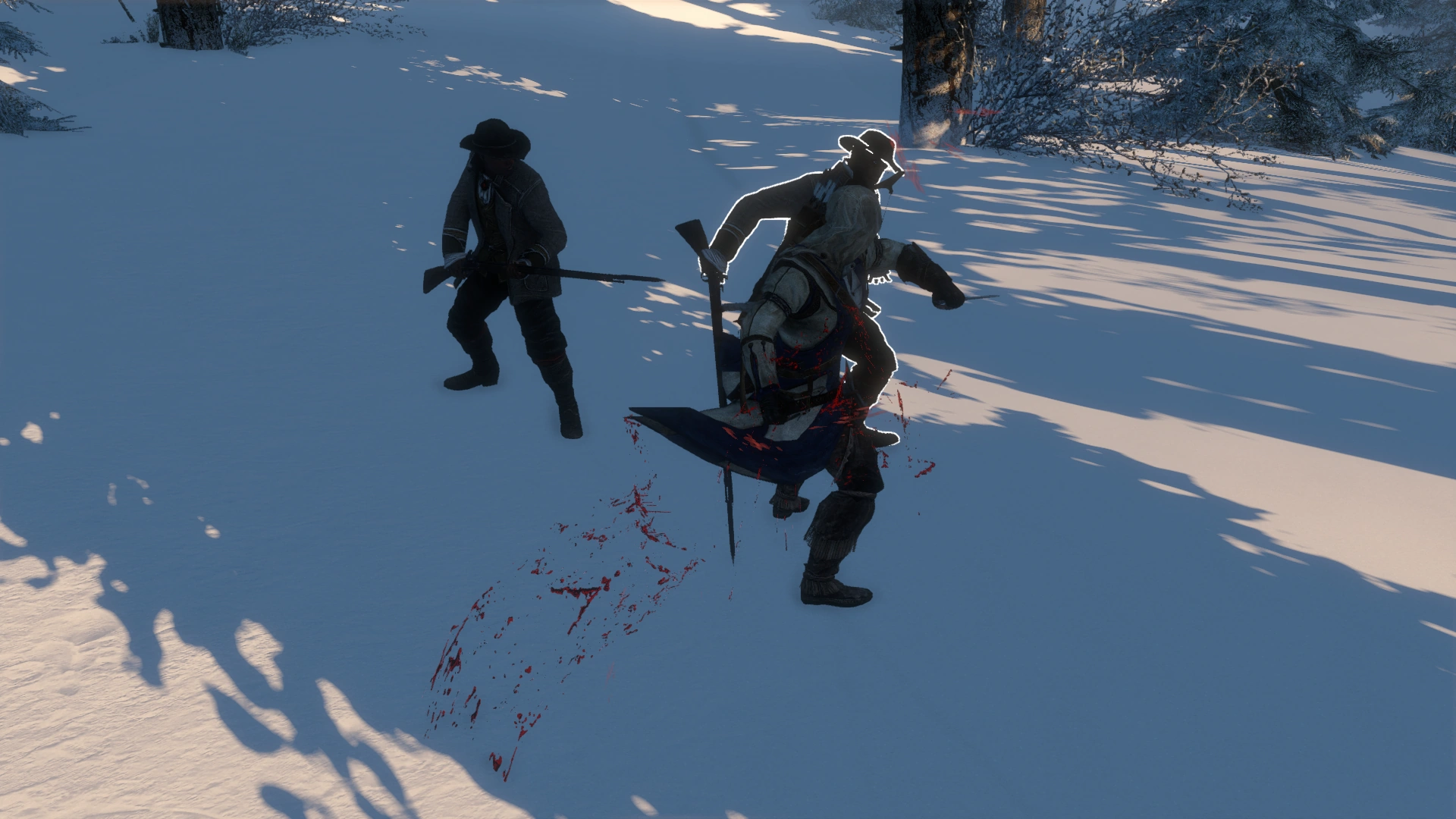 - Lead Game Designer Steven Masters mentioned that Connor could originally scalp his opponents,[144], a feature that was seen in the demo footage where he scalps a Redcoat officer and gives the piece to Washington,[145] but it was removed from the game since Ubisoft's Mohawk consultants felt that it was an unusual thing for their ancestors to do and Ubisoft agreed that it was too brutal for Connor's character.[144]