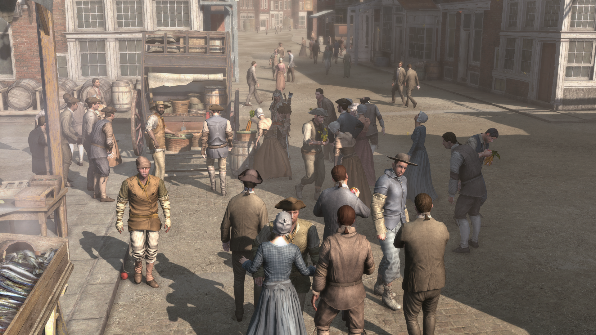 After purchasing the items on Achilles' list, Connor passed by a rioting crowd, who were yelling at the local British soldiers to leave Boston. Connor returned to Achilles' side as they observed the uproar, until they spotted Haytham speaking with another man in the crowd. Achilles, worried that the Templars would worsen the already delicate situation, sent Connor to discover what Haytham and his associate were planning.[10]