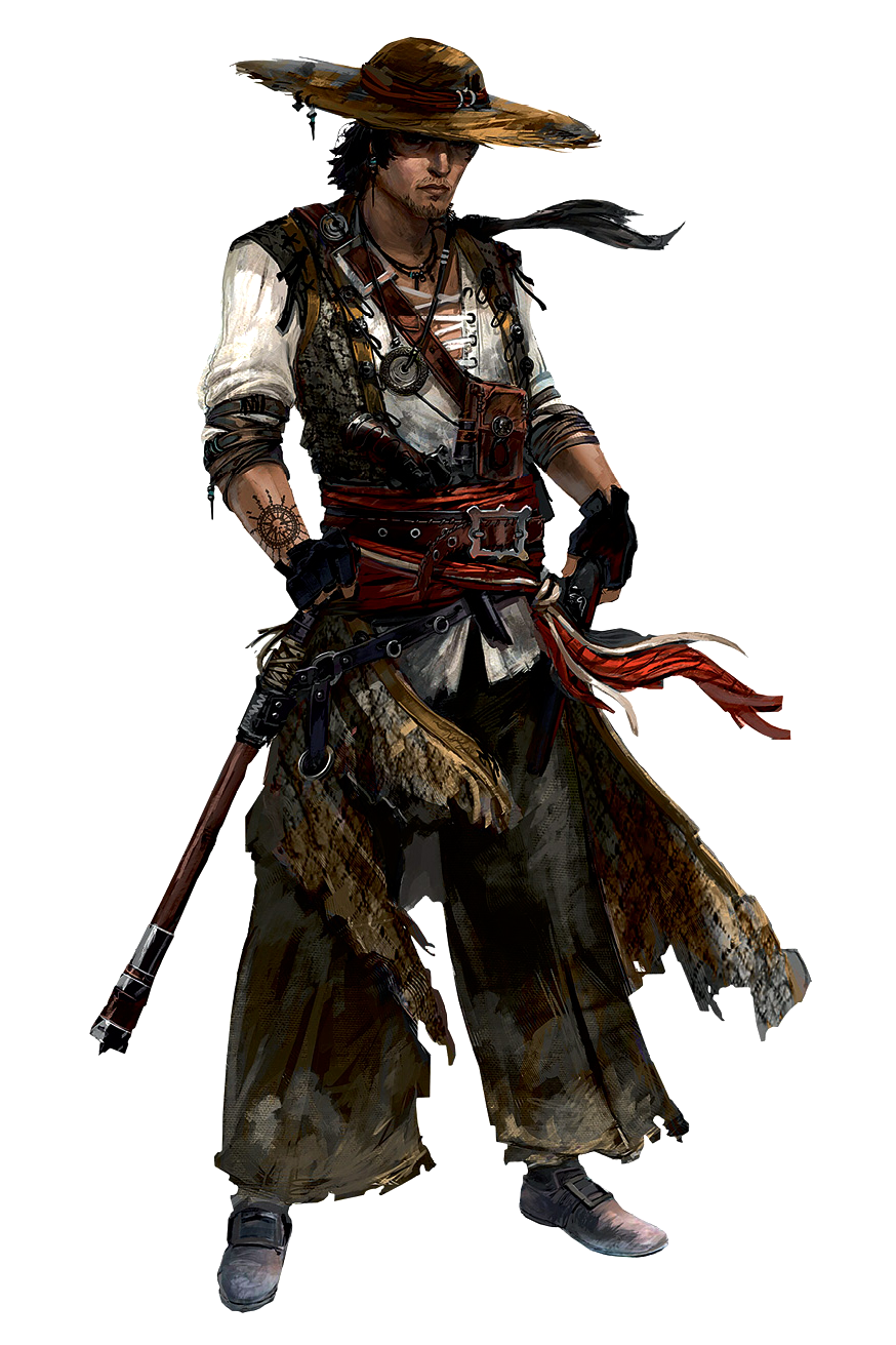 Forgoing a stealthy approach, the Wayfarer runs up behind his target and withdraws his club from his belt. Wielding his weapon one-handedly, he skilfully swings it into their leg, shattering their knee and unbalancing them slightly; this causes his victim to turn in agony as the Wayfarer fluidly spins beside them to build up momentum. Once he fully rotates himself, he savagely smashes his club into their skull, breaking it and sending them hurtling sideways to their death, with him soon sheathing his club.