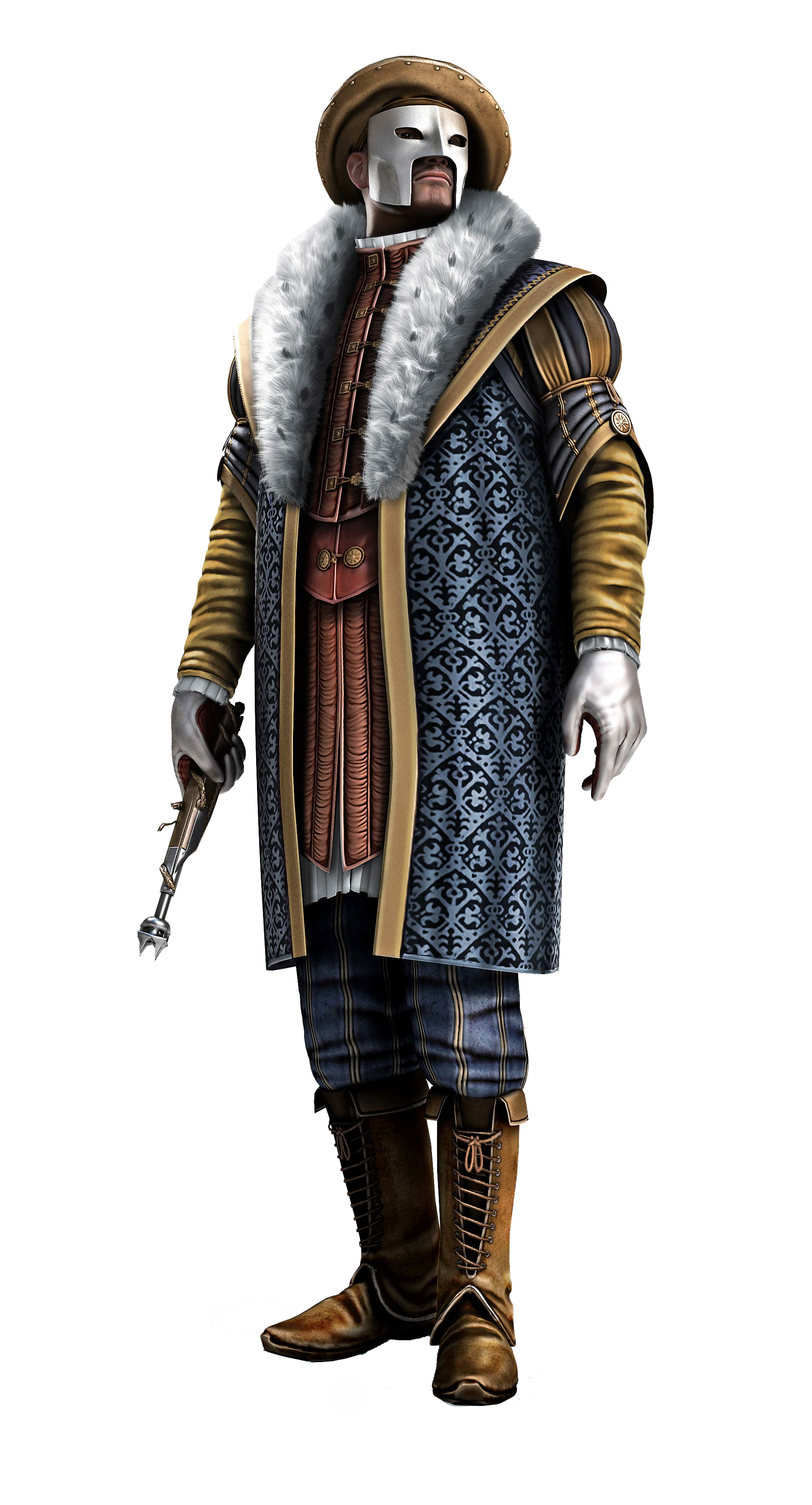 伊拉里奥·隆巴尔迪(Ilario Lombardi)是文艺复兴时期意大利一个为社会抛弃之人,曾被一个凶残的刺客攻击重伤,虽然活了下来,但对他的身心造成了极大的伤害。他将自己的身体隐藏在衣服之下,脸部用面罩隐藏。