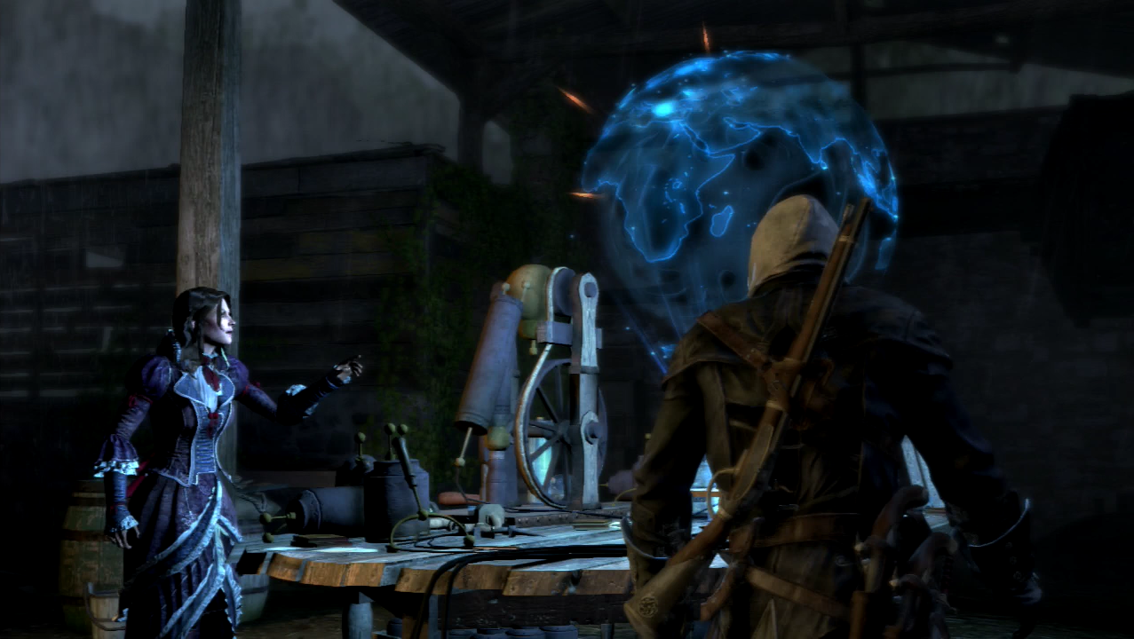 1754年7月,北美殖民地刺客霍普·詹森与谢伊·科马克协助发明家本杰明·富兰克林进行了将电力导入先行者之盒的实验。在三次尝试后,先行者之盒投影出了世界地图的全息影像,标示了数个地动神殿的位置,其中一个位于海地,另一个位于葡萄牙。不幸的是,查看这幅地图所要做的准备相当耗时耗力,既需要恰好合适的风暴状况,又需要大量的科学设备支持。两名刺客连忙记录下了神殿的位置,生怕无法再次打开先行者之盒。[6]不过到了1759年10月,北美殖民地刺客们找到了复制富兰克林实验的办法,[7]给先行者之盒充能,确定在北极的神殿的位置。 [8]