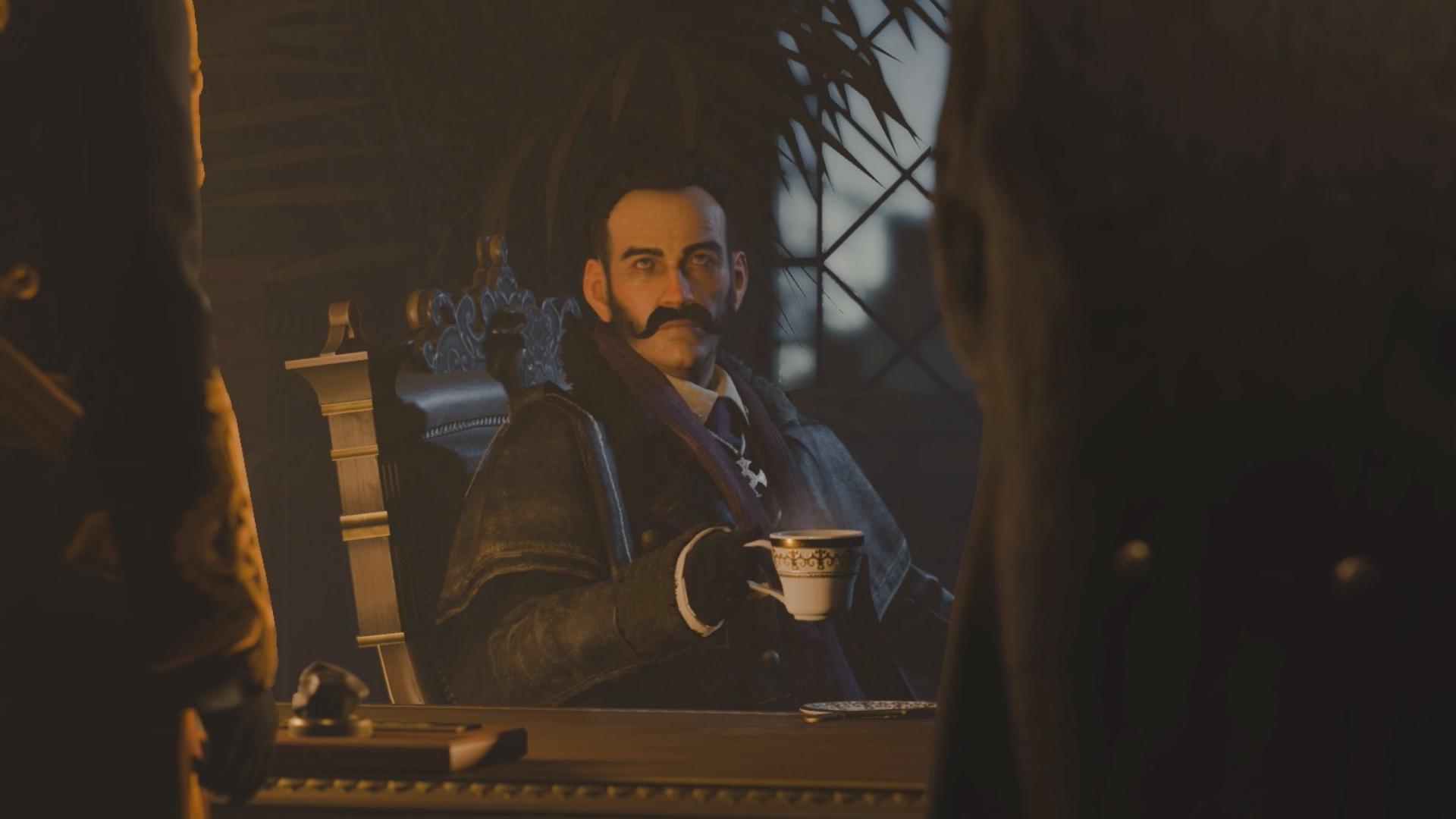 在雅各布·弗莱刺杀了约翰·艾略森并摧毁了斯塔瑞克的镇痛药水生产线后,卡迪根伯爵和菲利普·图彭尼前去面见斯塔瑞克以商讨如何应对刺客们的行动。而他却用自己手中的一杯印度茶来到自己手中流程的细致描述表达了他对雅各布对公司体系的影响的否认。
