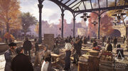 《辛迪加》中的伦敦比《刺客信条:团结》中的巴黎要大30% ,共划分为六个城区:威斯敏斯特,河岸,伦敦城,白教堂,萨瑟克和兰贝斯。[1]