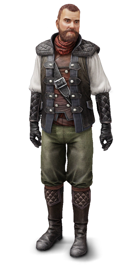A swamp-dwelling bon-vivant, Roussillon was so lazy he hired women to fight his battles for him. An alleged family man with a love of drink and fast women—which may be more legend than reality—Roussillon was rather loud for a smuggler. Evidence suggests that he would have gone out of business, had it not been for his partner, Élise Lafleur. - 图桑·鲁西永