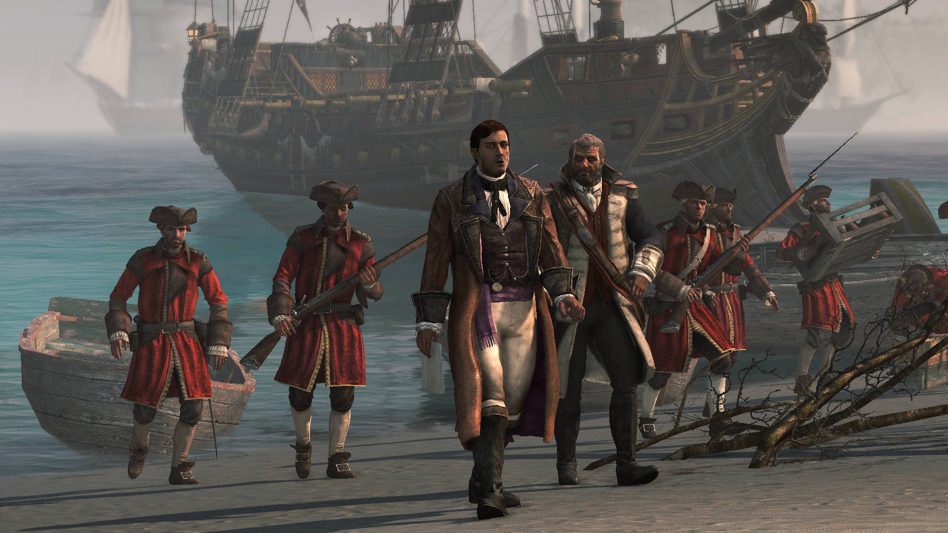 维恩与拉克姆驾驶游侠号 紧随其后,肯威为他们清开逃脱之路。随着封锁舰沉没,拉克姆与维恩的船员欢呼庆祝胜利。三艘船随后驶向大伊纳瓜补给整备,再度出海。这次,他们的目标是寻找已隐居于北卡罗来纳奥克拉科克的爱德华·蒂奇。[1]