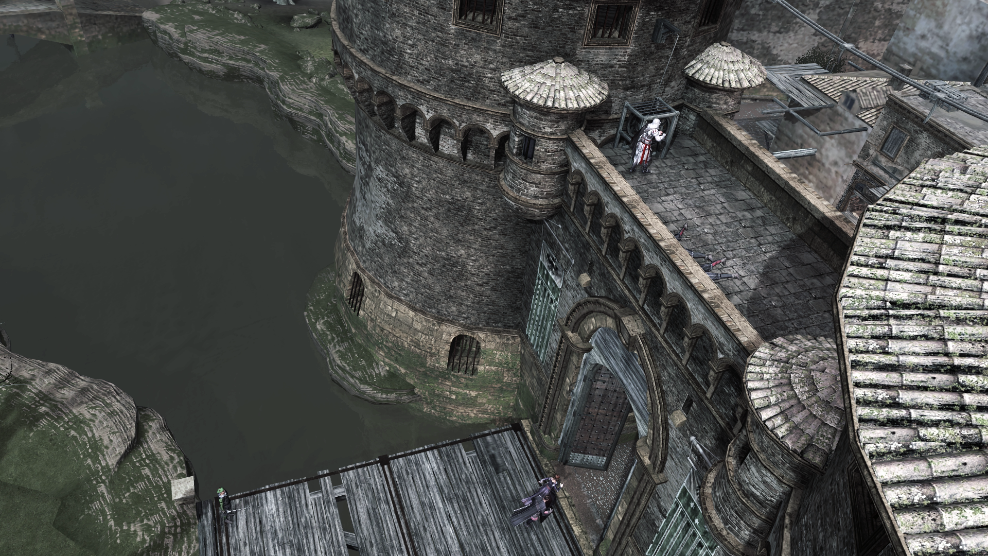 该模拟场景展现了圣麦丘雷亚修道院及其周围场景,其中大部分是住房,有些还是比较贫困的地区,但也有大量的市场摊位。弗利的街道又长又宽,有一条小巷连接着更为开阔的区域,其中一个地方是用来养马的,当中由几个马厩,以及干草堆与水槽。由于退潮,城中的水渠被排干,导致一口井可以成为逃生路线。[2]