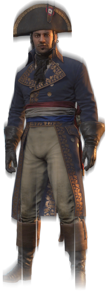 托马-亚历山大·仲马(Thomas-Alexandre Dumas),生名托马-亚历山大·达维·德·拉·巴叶特里(Thomas-Alexandre Davy de la Pailleterie),1762年出生,1806年去世。托马-亚历山大·仲马是法国大革命战争时期法军著名将领,出身于白人贵族世家,他的母亲却是父亲在圣多明戈雇佣的黑奴。尽管是黑白混血,仲马在长大成人的过程中仍旧得到了家族优厚的对待,并随父亲回到法国接受贵族教育。入伍法军部队之后,仲马成为了刺客兄弟会的盟友,协助他们在1793年时挫败了圣殿骑士推翻法兰西共和国的阴谋。他还成为了拿破仑·波拿巴的得力部下,同时也与刺客阿尔诺·多里安私交颇深。