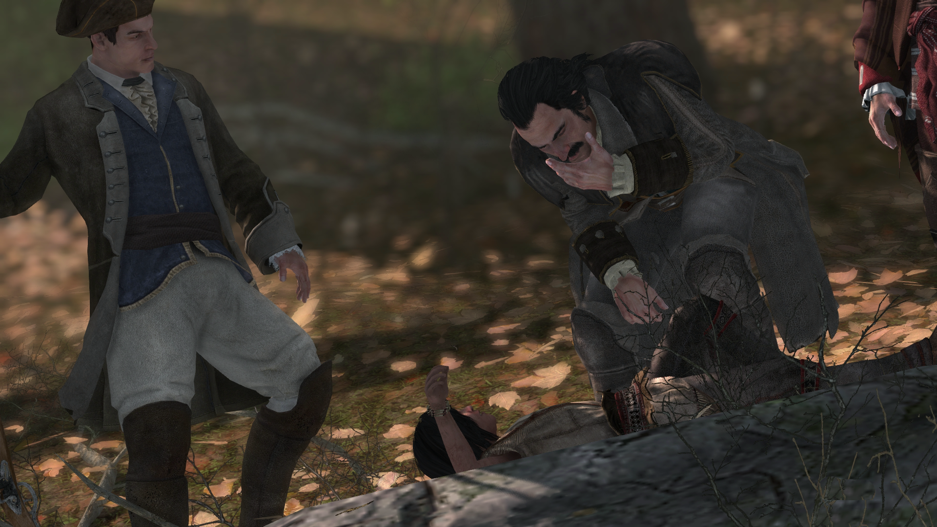 丘奇用一把火枪瞄准了拉通哈给顿,后者试图逃离这群人,却被查尔斯·李绊倒在地。查尔斯·李把自己的火枪交给托马斯·希基,然后气势汹汹地走向拉通哈给顿,给他翻过身来。