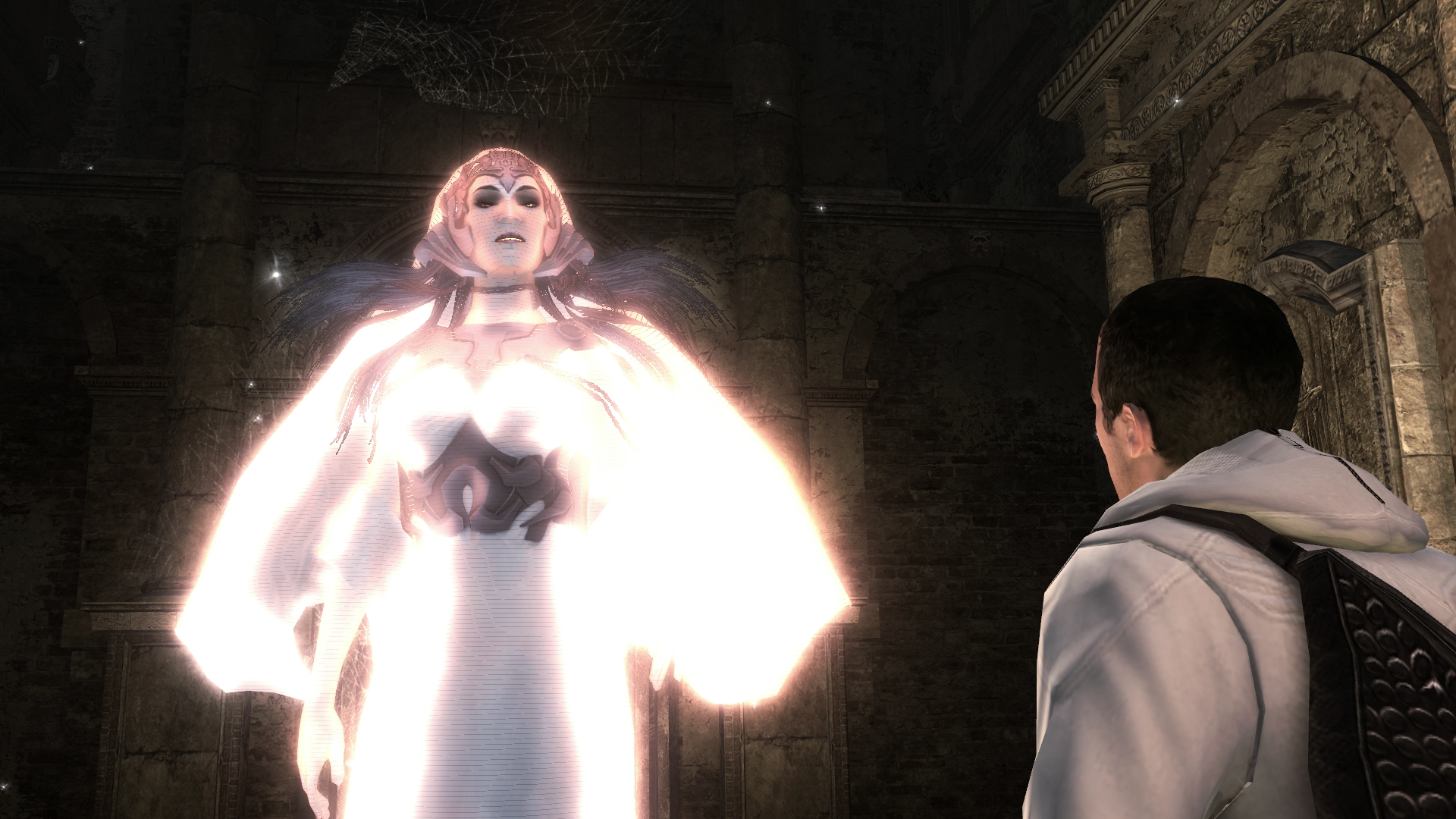 朱诺对戴斯蒙德谈起第一文明和神殿,并且再次阐释了密涅瓦曾经于1499年给予埃齐奥·奥迪托雷·达·佛罗伦萨的警告,而她的语气明显显得对人类更有敌意。将人类称作无知者的朱诺讲到了第一文明和人类血脉的融合——戴斯蒙德也继承了这融合之后的血脉——并且愤怒地表示他们本应放弃人类,任其自生自灭。[10]