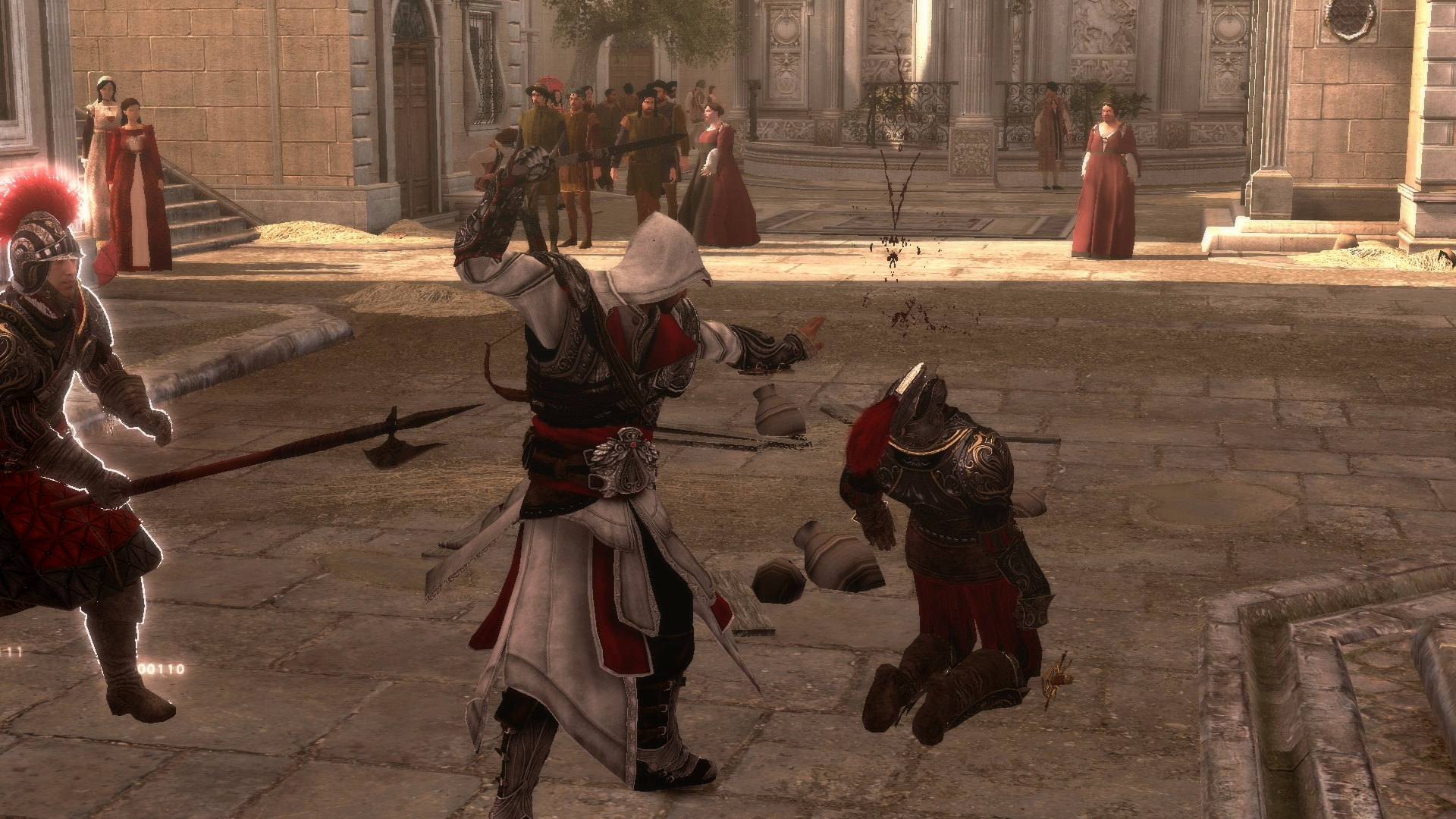 只有少数敌人如教皇卫兵、切萨雷·博吉亚[2] 和禁卫军[3]能够双持武器,一般只会使用一把手枪搭配长剑战斗。官员和赏金猎人也会以类似的方式双持武器。[5]