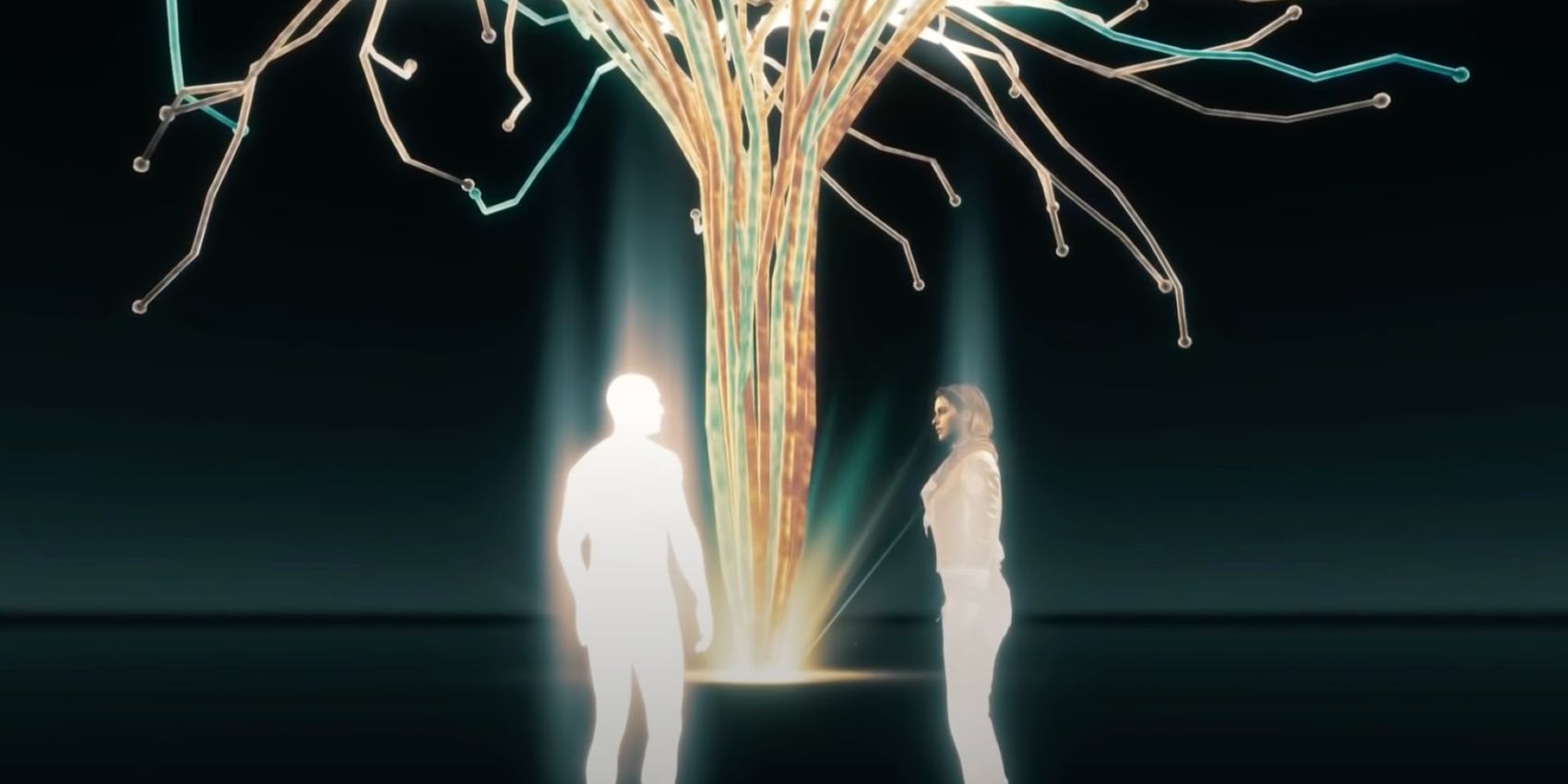 在2018年10月,蕾拉·哈桑在她的文件中将"灰白之境"描述为“脱离虚拟的存在进入一种精神结合科技的混合来生”。[11]两年后,蕾拉通过艾沃尔·瓦林斯多蒂尔的基因记忆发现世界树后,将自己的意识上传至灰白之境。在模拟中,蕾拉遇见了巴辛姆·伊本·伊沙克。后者帮助她逆转了戴斯蒙德·迈尔斯在2012年启动全球极光装置的过程,使地球磁场恢复正常功率并拯救了地球。[12]