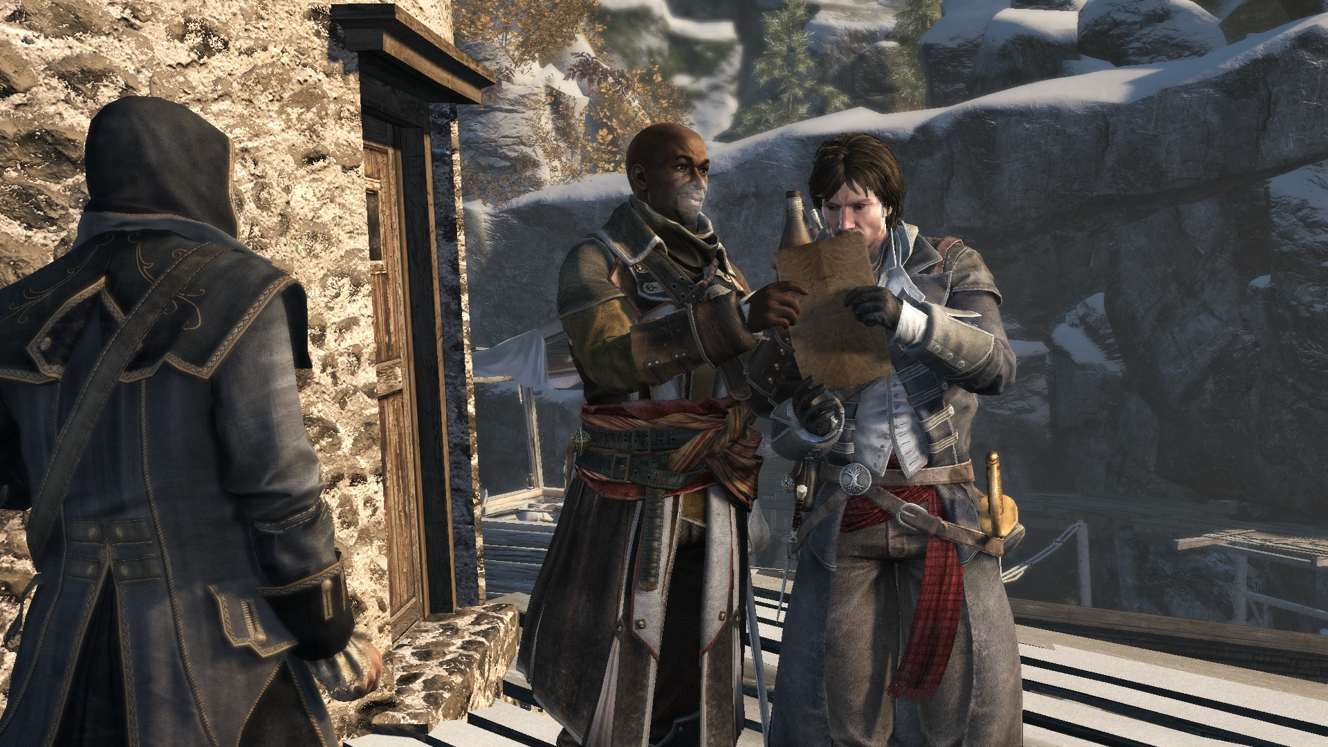 后来通过朋友高缇耶,猎人得知刺客们在寻找那个特殊的手稿,并在之后于刺客安排了见面。4月,猎人和高缇耶与他的同伴谢伊·科马克以及利亚姆·奥布莱恩在安蒂科斯蒂岛的要塞会合。猎人告诉刺客们他所见过的一切,透露说手稿是奉劳伦斯·华盛顿这名重要的圣殿骑士之命带上船的。