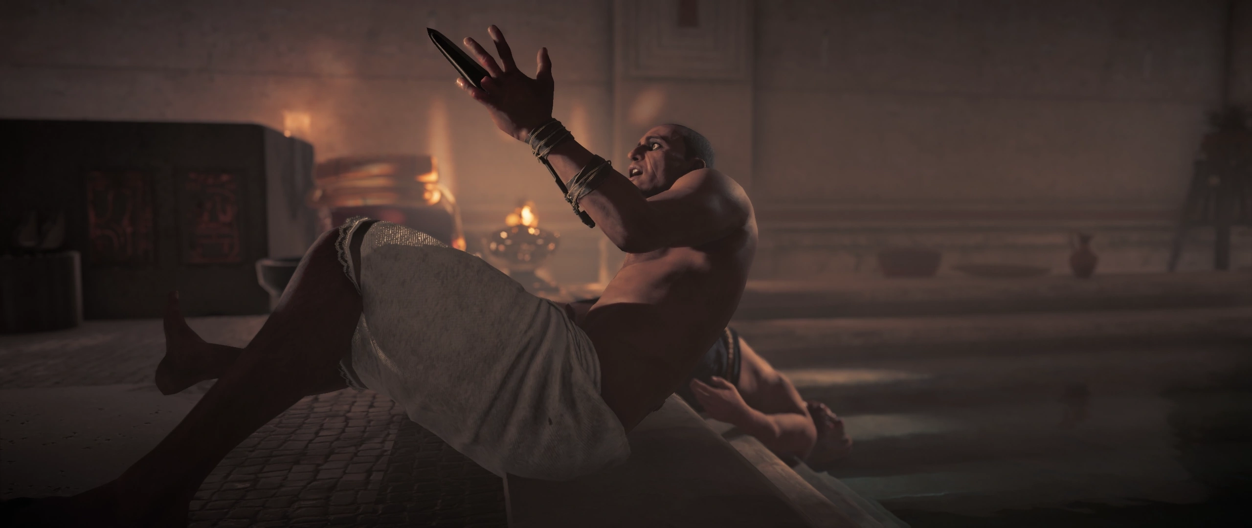 巴耶克赶到灯塔码头,看到肯努特跪在地上哭泣,绝望地望向湖面,随后潜入水中捞回了夏迪雅的尸体。当霍特普赫拉斯随后赶到现场时,巴耶克向这位悲痛的父亲承诺,他一定会杀死"鳄鱼"为夏迪雅报仇。霍特普赫拉斯告诉巴耶克,"鳄鱼"的士兵很可能是来自克罗克迪洛波利斯竞技场的角斗士。[17]