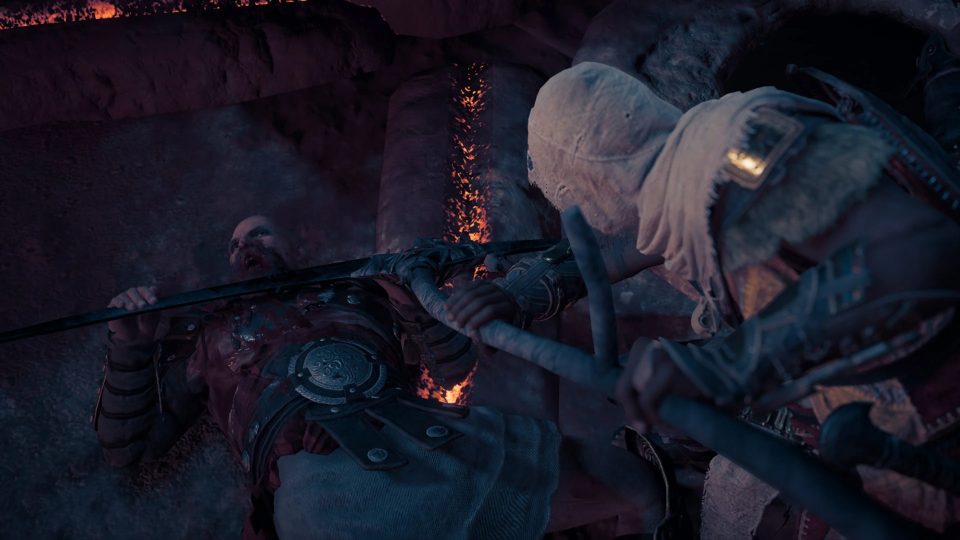 处理完三名杀手后,巴耶克回到克利奥帕特拉和艾雅身边,但他们的重聚被维纳托率领更多士兵的突袭打断。短暂的战斗后,巴耶克杀死了维纳托。随后,克利奥帕特拉命令两位守护者向罗马将军庞培送信,请求结盟。[19]