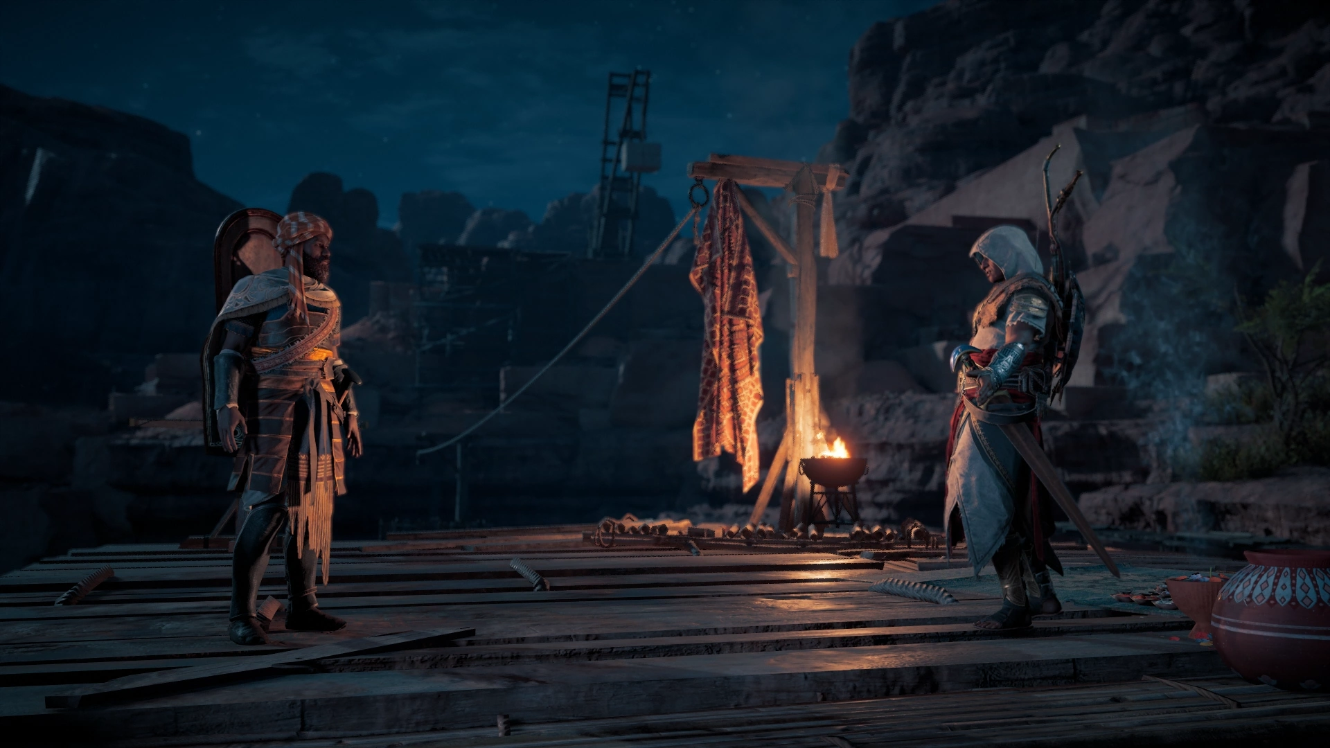 在克莱斯马采石场,被捕的纳巴泰人被迫在罗马军团长兼教团成员塔西托的控制下从事苦役。最终,巴耶克刺杀了塔西托,而后这位导师又与塔希拉一起解救了其他纳巴泰囚徒,重新夺回了采石场。[8] 在亚西诺伊,纳巴泰工人被石匠兼教团成员卜塔摩斯驱使,搜寻包括托特之刃与星辰碎片在内的宝物,并在此期间亵渎了阿蒙麦西斯金字塔。试图反抗卜塔摩斯的纳巴泰人都被关押进了维力克斯营地,遭受严刑讯问。幸而,巴耶克最终刺杀了卜塔摩斯,结束了他对亚西诺伊民众的残酷压迫。[9]