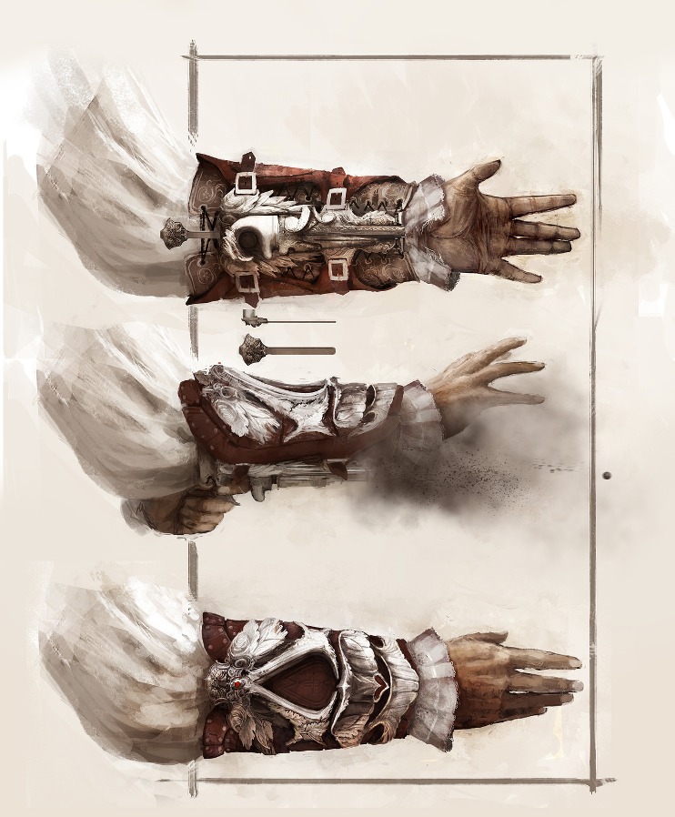 - 袖枪击发的声音类似于火枪,而在刺客信条2中则像是炮声。