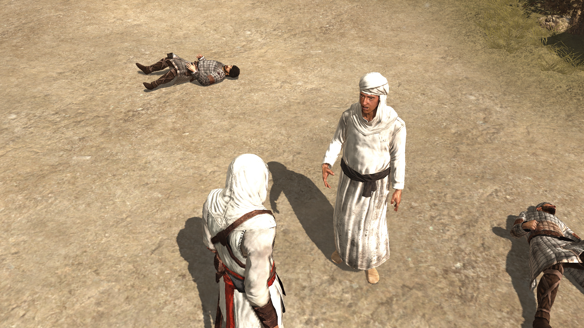 - 阿泰尔在和卫兵战斗时,市民出于恐惧会躲藏起来。在原先的卫兵被杀死后,市民看上去就会恢复正常,即时是阿泰尔和后面赶来的卫兵战斗。