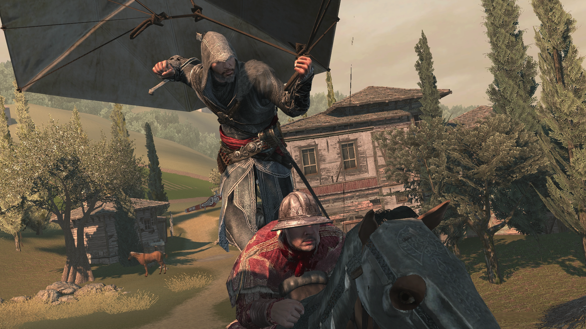 - 在刺客信条:兄弟会中,跳下圣天使堡时用降落伞滑翔会得到 "像鹰一样飞翔" 的成就.